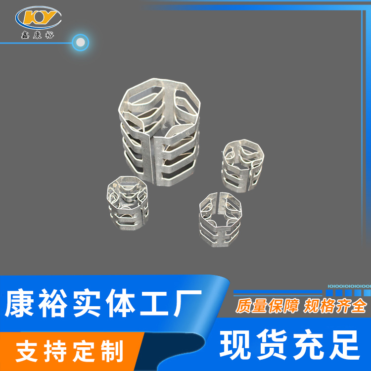 康裕金屬八四內(nèi)弧環(huán)類似花環(huán)開關(guān)的金屬填料,也稱麥勒環(huán)填料。它的特點是環(huán)壁開敞面積大,所以具有通量大、阻力小和傳質(zhì)效率高等特點。