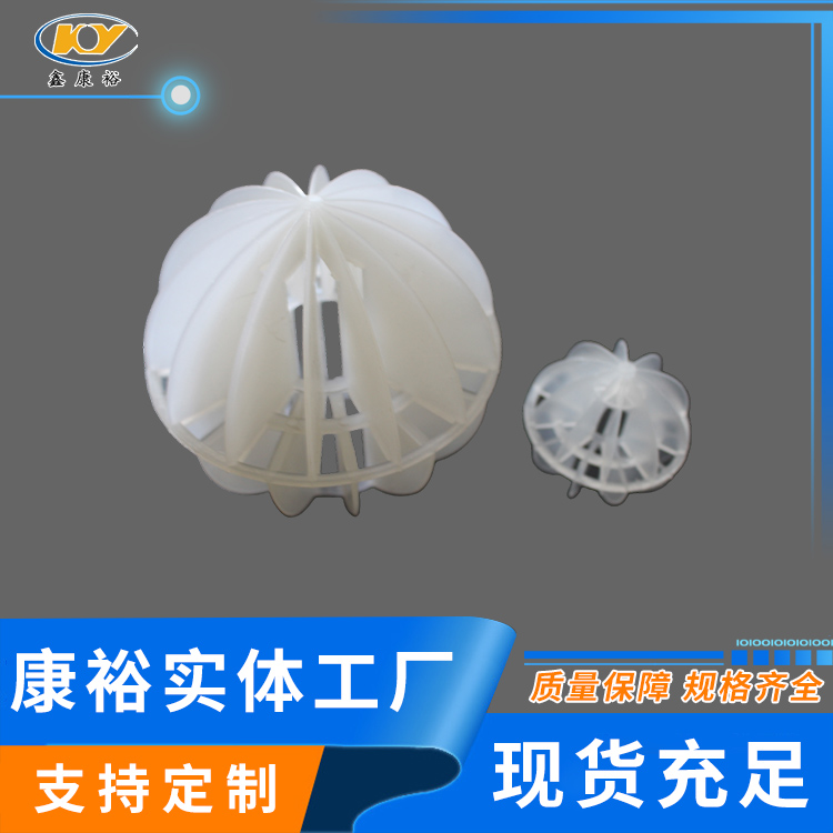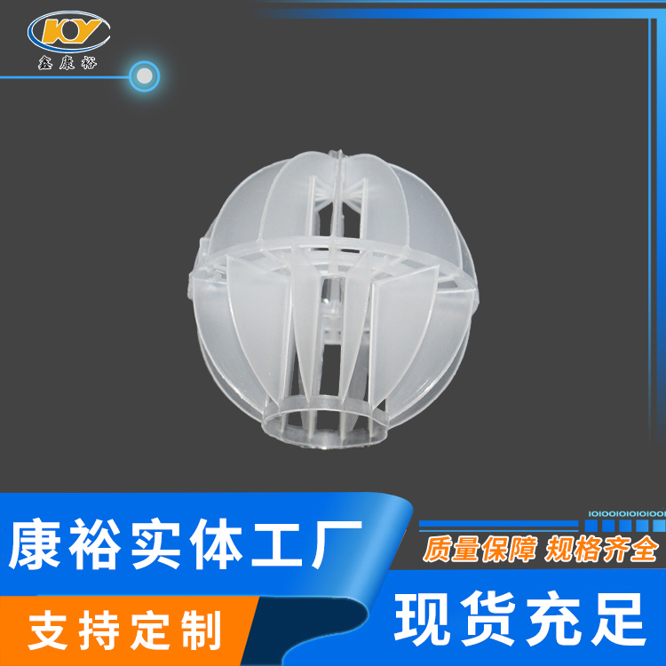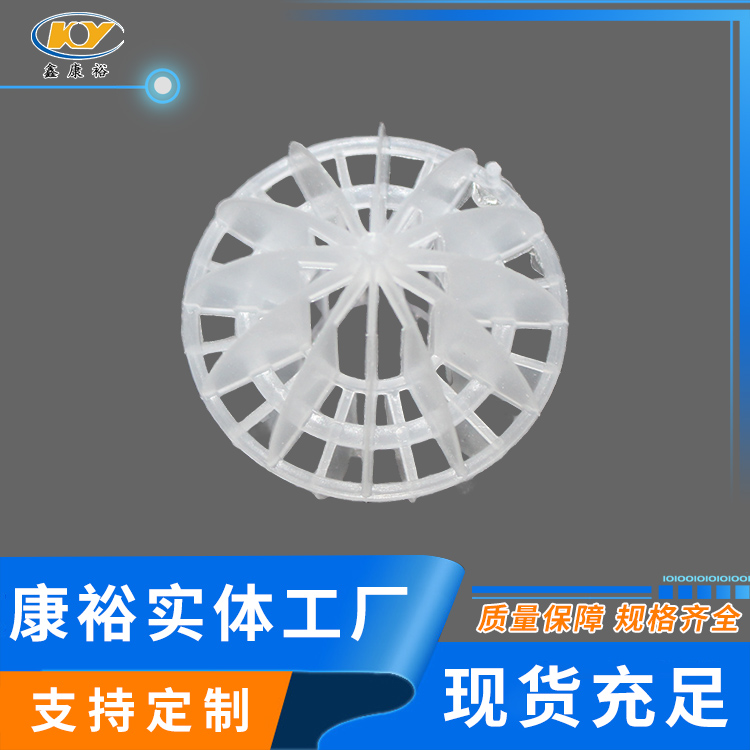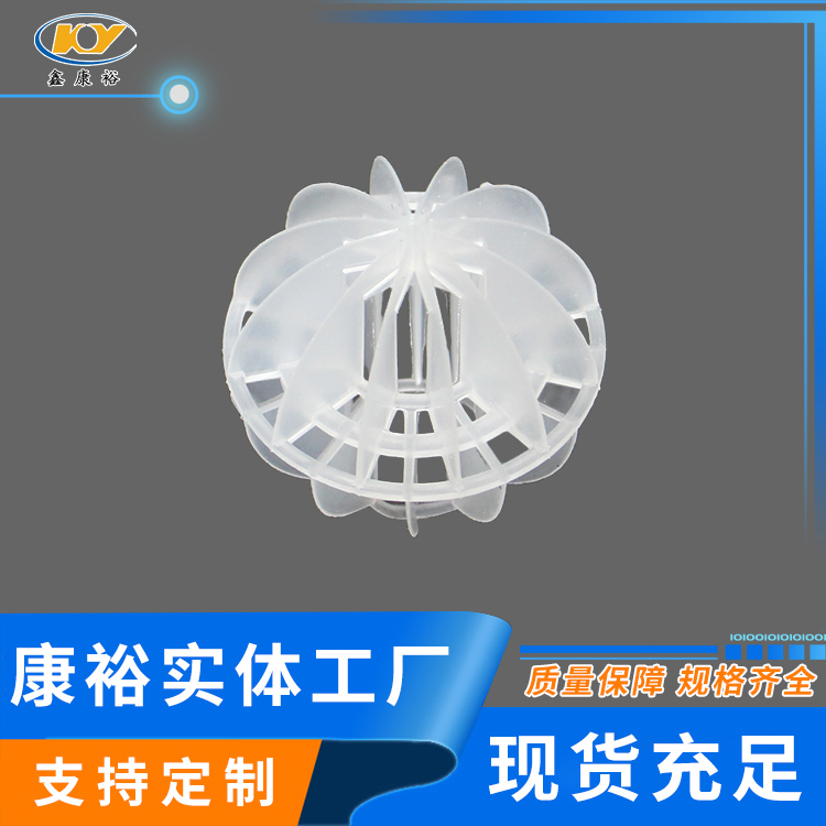 塑料多面空心球填料是水處理項(xiàng)目和廢氣處理常用到的一種填料,也是現(xiàn)在環(huán)保裝置項(xiàng)目常見的一種填料,大多采用聚丙烯(PP)塑料制成。多面空心球填料,在球中部沿整個(gè)周長有一道加固環(huán),環(huán)的上下各有十二片球瓣,上下球瓣互相交錯(cuò),沿中心軸呈放射形布置。多面空心球填料具有表面積大,傳質(zhì)效率高,產(chǎn)品的球瓣與球瓣之間空間大,且重量輕、強(qiáng)度大、安裝方便、葉片多,阻力小,耐高溫,耐腐蝕,性能穩(wěn)定,適用于中間水箱,二氧化碳脫氧塔,接觸反應(yīng)塔等裝置。在全國電力、化學(xué)、化纖、電子、造紙、化肥生產(chǎn)、河水淡化,環(huán)保、三廢處理等行業(yè)的水處理、脫碳、脫氣、凈化、脫碳酸及油水分離等處理裝置中廣泛使用。