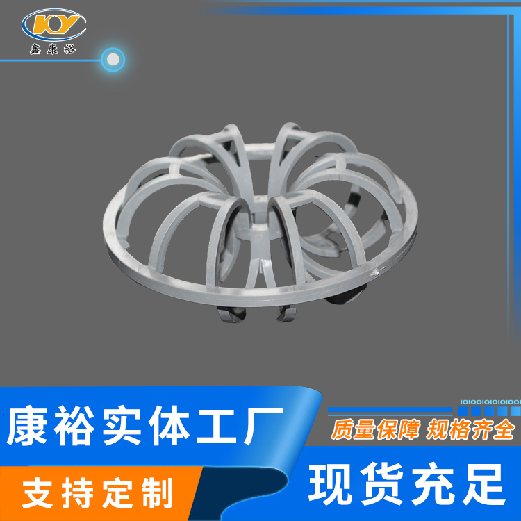 塑料花環(huán)填料早是由美國(guó)A.J.Teller于1954年研制開(kāi)發(fā)出來(lái)的,故而常稱之為泰勒花環(huán)(TellerRosette)。由于填料的空隙處能有較高的持液量,可使塔內(nèi)液體的停留時(shí)間較長(zhǎng),從而增加了氣液兩相的接觸時(shí)間,提高了填料的傳質(zhì)效率。 花環(huán)填料也稱梅花環(huán)填料塑料花環(huán)填料是由12個(gè)小圓環(huán)按徑向排列而組成的一個(gè)大扁球體,很類似于一個(gè)螺旋形彈簧首尾相接繞成的一個(gè)圓球體。有的小圓呈A字;有的在小圓和大圓邊沿還帶有齒;有的外圍沒(méi)有大圓圈,只有里面的小圓組成等,客戶可根據(jù)各自的要求訂購(gòu)不同種類的花環(huán)。